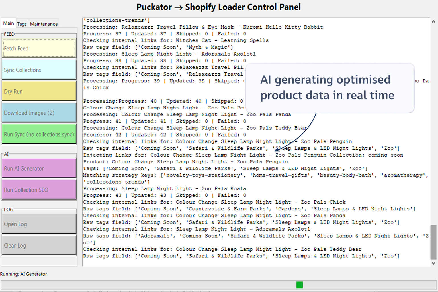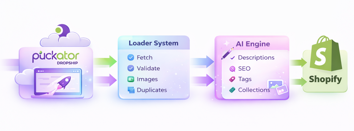 Managing a Puckator dropshipping store typically involves importing feeds, fixing images, structuring products, writing descriptions, and organising collections. StoreStreamer consolidates this into a single controlled workflow.